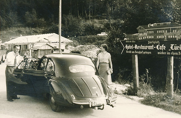 Wegweiser des Gasthofs zum Türken am Hintereck am Fuße des Eckerbichls Mitte der 1950er Jahre