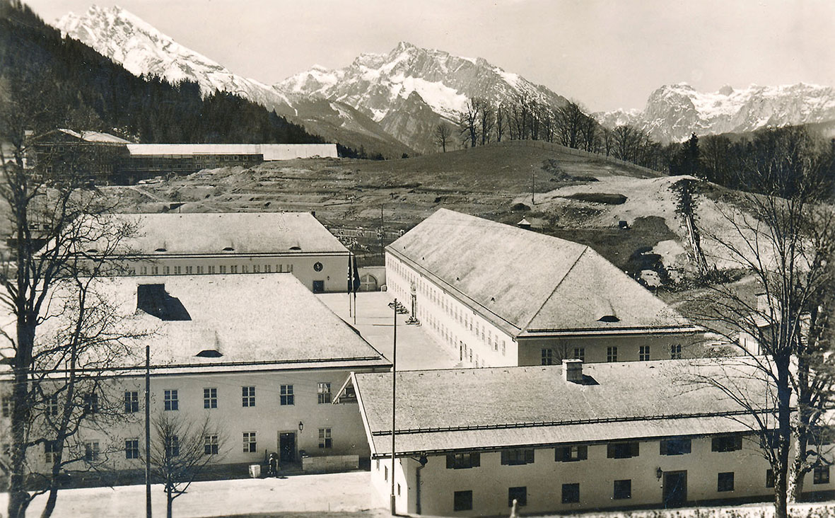 Teilansicht der Kasernenanlage nach der Fertigstellung, im Hintergrund das Hotel Platterhof, vormals Pension Moritz