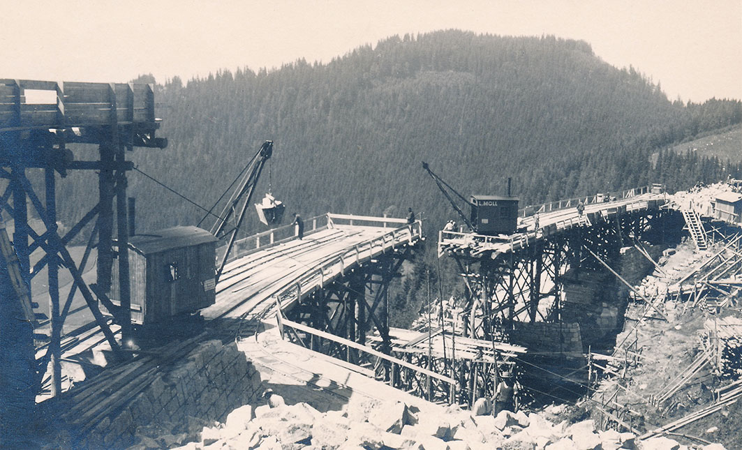 Brückenbau an der Roßfeldpanoramastraße (Aufnahme um 1940)