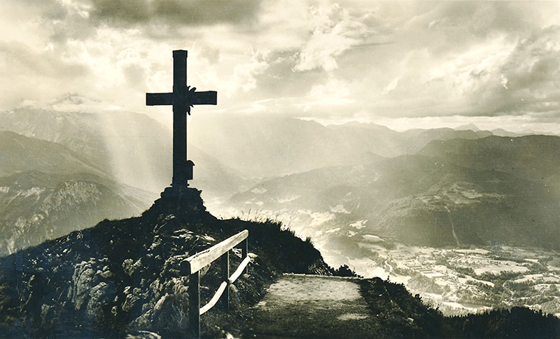 Arkadengang des Hotel Platterhof, mit gegenüberliegendem, heute noch erhaltenen, Berggasthof